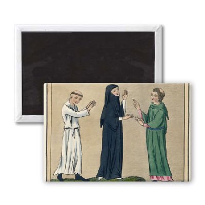 Art247 - '2 MONKS MEET A NUN, C13' - Aimant de réfrigérateur, 7,5 x 5 cm - gros bouton aimanté - aimant