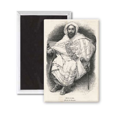 Art247 - 'Abd El Kader, Algerian leader' - Aimant de réfrigérateur, 7,5 x 5 cm - gros bouton aimanté - aimant