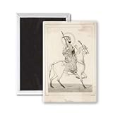 Art247 - 'AKBAR, MUGHAL EMPEROR' - Aimant de réfrigérateur, 7,5 x 5 cm - gros bouton aimanté - aimant