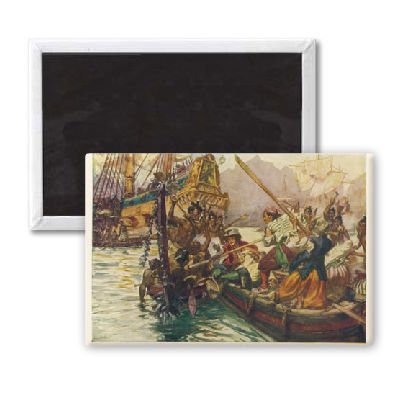 Art247 - 'Abel Tasman attacked at Massacre Bay, New.. - Aimant de réfrigérateur, 7,5 x 5 cm - gros bouton aimanté - aimant .