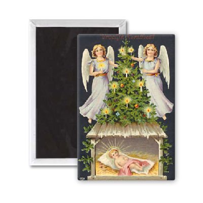Art247 - 'ANGELS, TREE, BABY JESUS' - Aimant de réfrigérateur, 7,5 x 5 cm - gros bouton aimanté - aimant