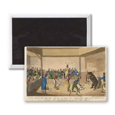 Art247 - 'BEAR BAITING, 1821' - Aimant de réfrigérateur, 7,5 x 5 cm - gros bouton aimanté - aimant
