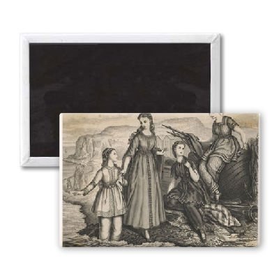 Art247 - 'BATHING BELLES, 1869' - Aimant de réfrigérateur, 7,5 x 5 cm - gros bouton aimanté - aimant