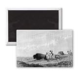 Art247 - 'BUFFALO HUNT, MISSOURI' - Aimant de réfrigérateur, 7,5 x 5 cm - gros bouton aimanté - aimant