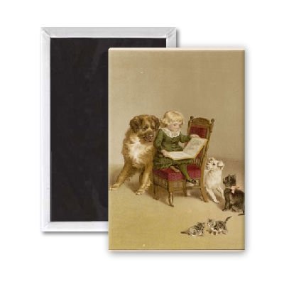 Art247 - 'CHILD, PETS & BOOK' - Aimant de réfrigérateur, 7,5 x 5 cm - gros bouton aimanté - aimant