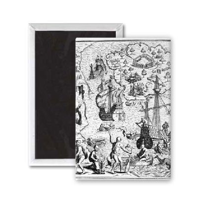 Art247 - 'Columbus at Isla Margarita', from 'The.. - Aimant de réfrigérateur, 7,5 x 5 cm - gros bouton aimanté - aimant