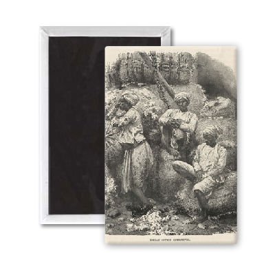 Art247 - 'COTTON WORKERS, INDIA' - Aimant de réfrigérateur, 7,5 x 5 cm - gros bouton aimanté - aimant